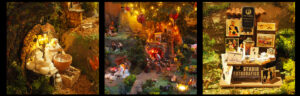 Freuen sie sich auch wieder auf unsere große Neapolitanische Weihnachts-Krippen-Landschaft. Wie seit vielen Jahren waren wir auch dieses Jahr wieder in der legendäre Via San Gregorio Armeno in Neapel, in der seit Jahrhunderten einige Familien die lebendige Handwerks-Tradition pflegen, Figuren und bewegliche Szenen liebevoll von Hand herzustellen. Ein ganz alltägliches, buntes Treiben herscht um die eigentliche Weihnachtskrippe herum. Da wird eine Pizza in den Ofen geschoben, ein störrischer Esel bockt vor einer Brücke, ein Kind wird im Waschzuber gebadet und ein Käsemacher rührt in seinem großen Topf. Überall plätschert Wasser in Brunnen und flackern kleine Lagerfeuer. Neapolitanisches Alltagseben eben! Jedes Jahr gesellen wir wieder neue lebendige Szenen hinzu.